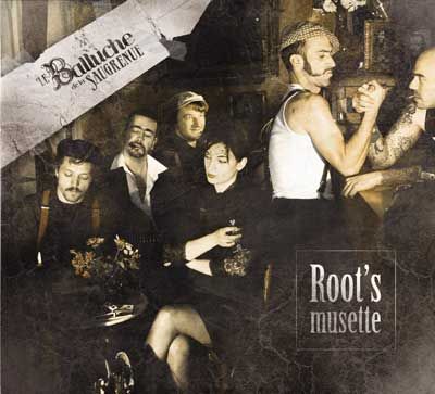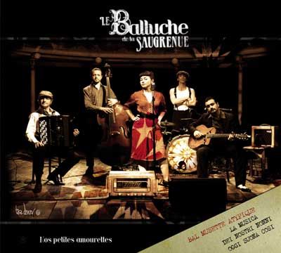 Cet album live, enregistré en Italie en Mai 2011 par Stefano Melone, produit par Shéhérazade, figure dans la collection « Creazioni » du label TacaDancer, label qui met en avant les créations autour des musiques de danses populaires. Rassemblant compositions et reprises réarrangés, le Balluche de la Saugrenue nous propose ici sa version du bal musette : oubliez les jupes à pois, les guinguettes au bord de marne, le son des flonflons et rendez-vous dans les bas fonds de la ville de Paris aux côté des apaches, des marlous, des paumés et des toxicos. Leurs histoires, cocasses ou glauques, sont chantés ici par Nina la Brume (Anne Ratsimba), avec une gouaille parisienne dans la trace de Fréhel, le swing en plus. Les affres de l'amour, conduisant tantôt au meurtre, tantôt à sombrer dans l'addiction, thèmes récurrents de la chanson réaliste, sont dépeint ici avec un décalage certain, mais non sans panache. Les adeptes de la boîte à frissons ne sont pas en reste avec une reprise du chef d’œuvre de Gus Viseur Douce Joie, qui fait écho à la mystérieuse Araignée de Flo la Bretelle (Florent Sepchat). On aura également l'occasion de se rappeler, à travers les différents titres, que le bal musette, ce divertissement haut de gamme, ne faisait pas dans la simplicité, et que l'apport des cultures en Europe à beaucoup nourri le style (paso doble, polka, tango, culture manouche). Il faut là reconnaître le travail sur le style que le Balluche de la Saugrenue à entrepris : une gageure de faire sonner cette musique dans l'esprit de l'époque, avec l'énergie d'aujourd'hui. Enfin pour ceux qui pensaient encore que musette rimait avec paillette, entrez vite dans ce caboulot atypique vous faire une idée de la chose, mais un conseil : attention aux coups de surins....